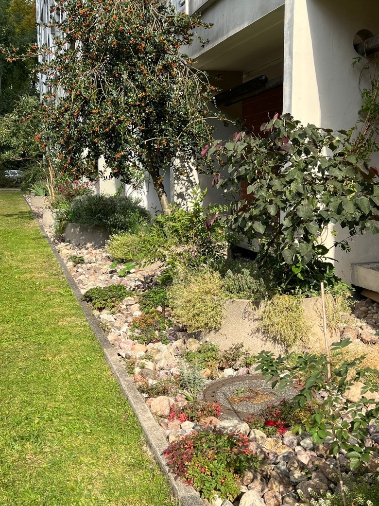 Seit März diesen Jahres habe ich mit ihrer Unterstützung drauflosgepflanzt, geräumt und gejätet, entmüllt. Auf das Ergebnis bin ich jetzt schon stolz. Der Raum um das Haus wurde über den Sommer schon sichtbar schöner und gepflegter. Noch stolzer bin ich allerdings auf die Wirkung, die das auf die Gemeinschaft hat. Etwa 10% der Menschen im Haus haben sich bereits direkt oder indirekt beteiligt! Es gab Sach- und Geldspenden, Gießhilfe und Arbeitseinsatz – und das, obwohl ich (ob der immer noch etwas ungewissen Umstände) nicht offensiv darum geworben habe.